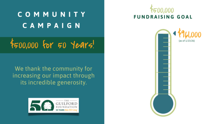 Our founders wanted a lasting funding source focused on bettering the community. In honor of 50 years of impact, neighbors exceeded our $500,000 goal by donating over $960,000 in support their community foundation. We are deeply grateful for their investment in Guilford for the next 50 years and beyond.